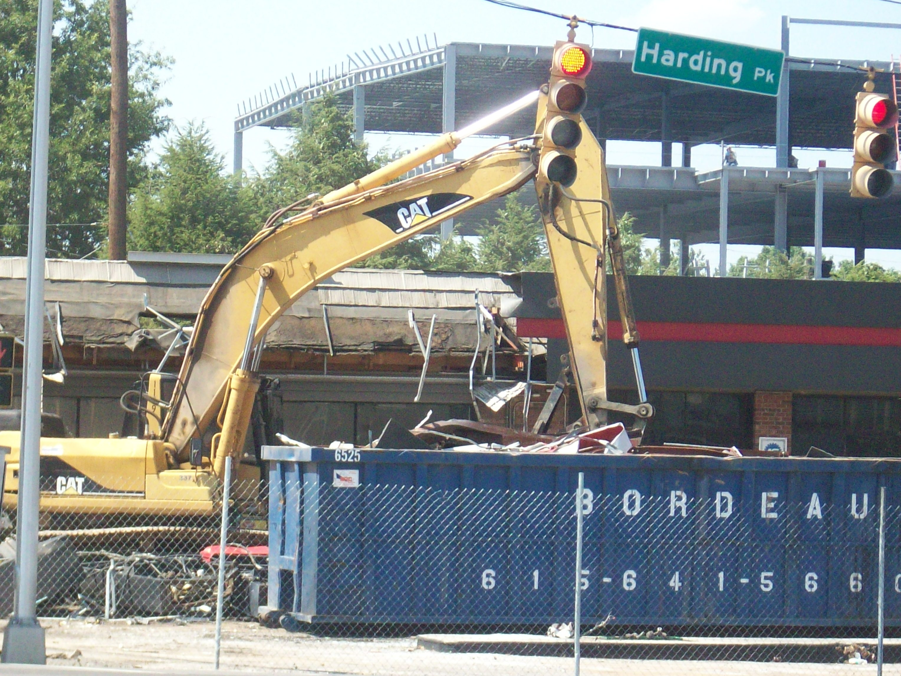 A crane destructs an old gas station. (Davidson A.M./The Tennessean)