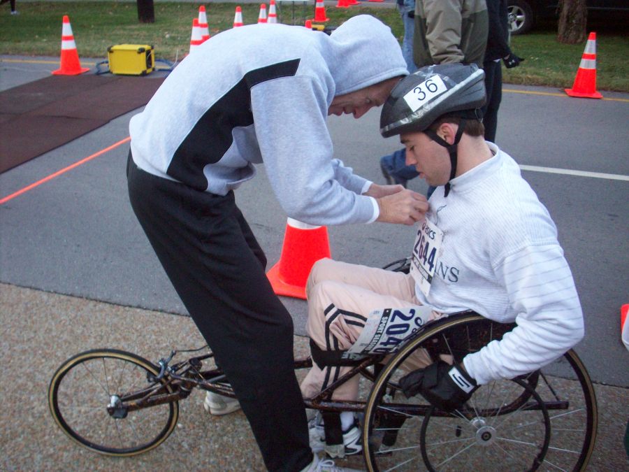 A father and son get ready for the Belle Meade Boulevard. (Davidson A.M./The Tennessean)