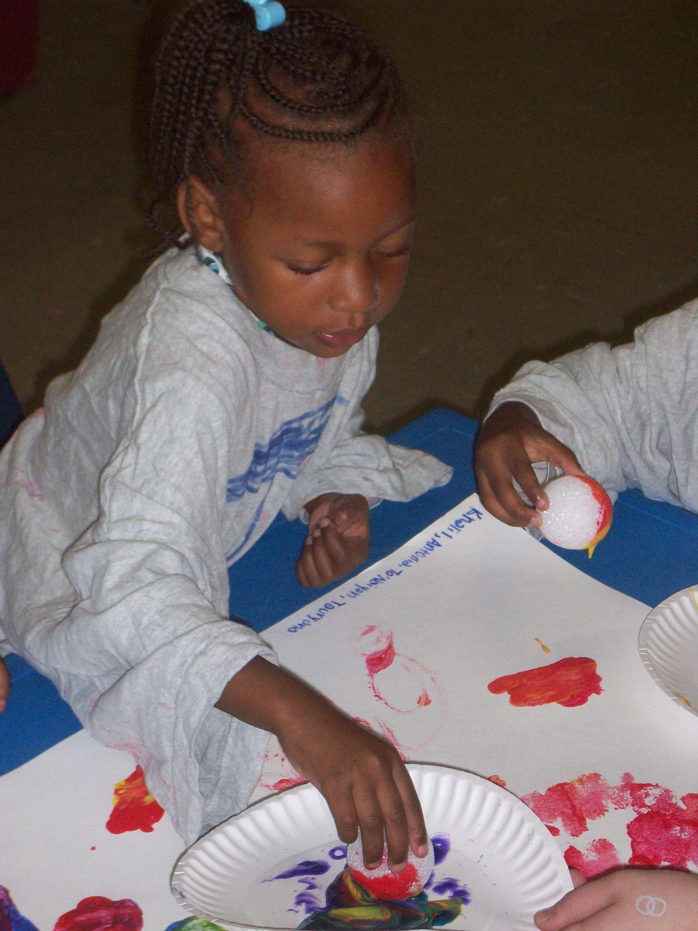 A pre-school student paints her name. (Davidson A.M./The Tennessean)