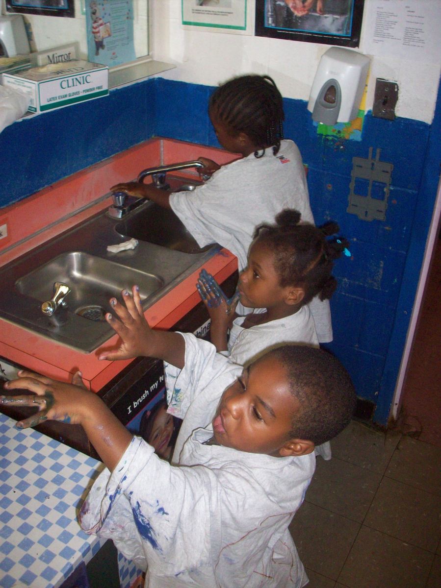 Students line up to wash their hands. (Davidson A.M./The Tennessean)